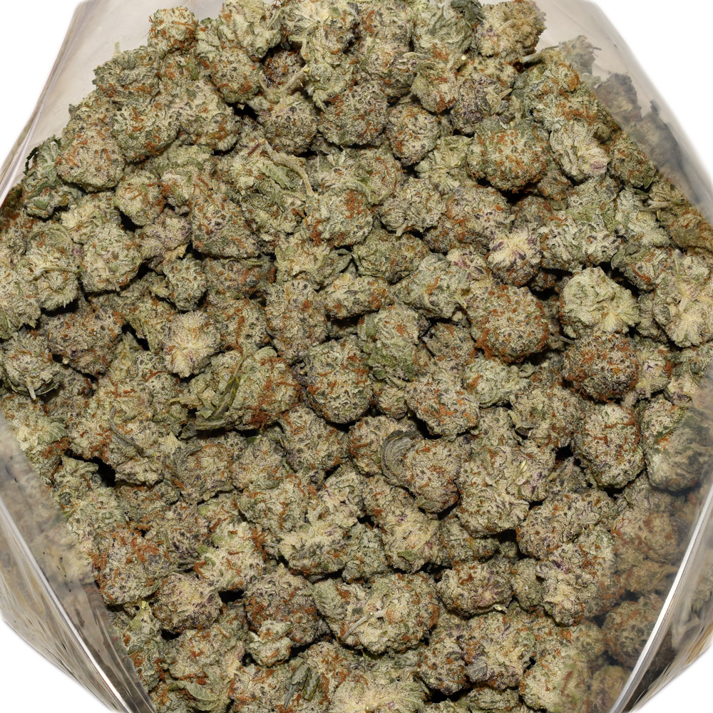 Afgoo Popcorn AAAA is another name for Afgooey, a cross of an unknown sativa from Maui and an unknown indica from Afghanistan. It’s a good nighttime strain with strong indica genetics (sativa/indica ratio of 20:80). THC levels are strong, passing 28% in some tests. There isn’t much CBD in this strain, though, less than 1%, so it should not be used to treat conditions that respond to CBD, such as epilepsy.