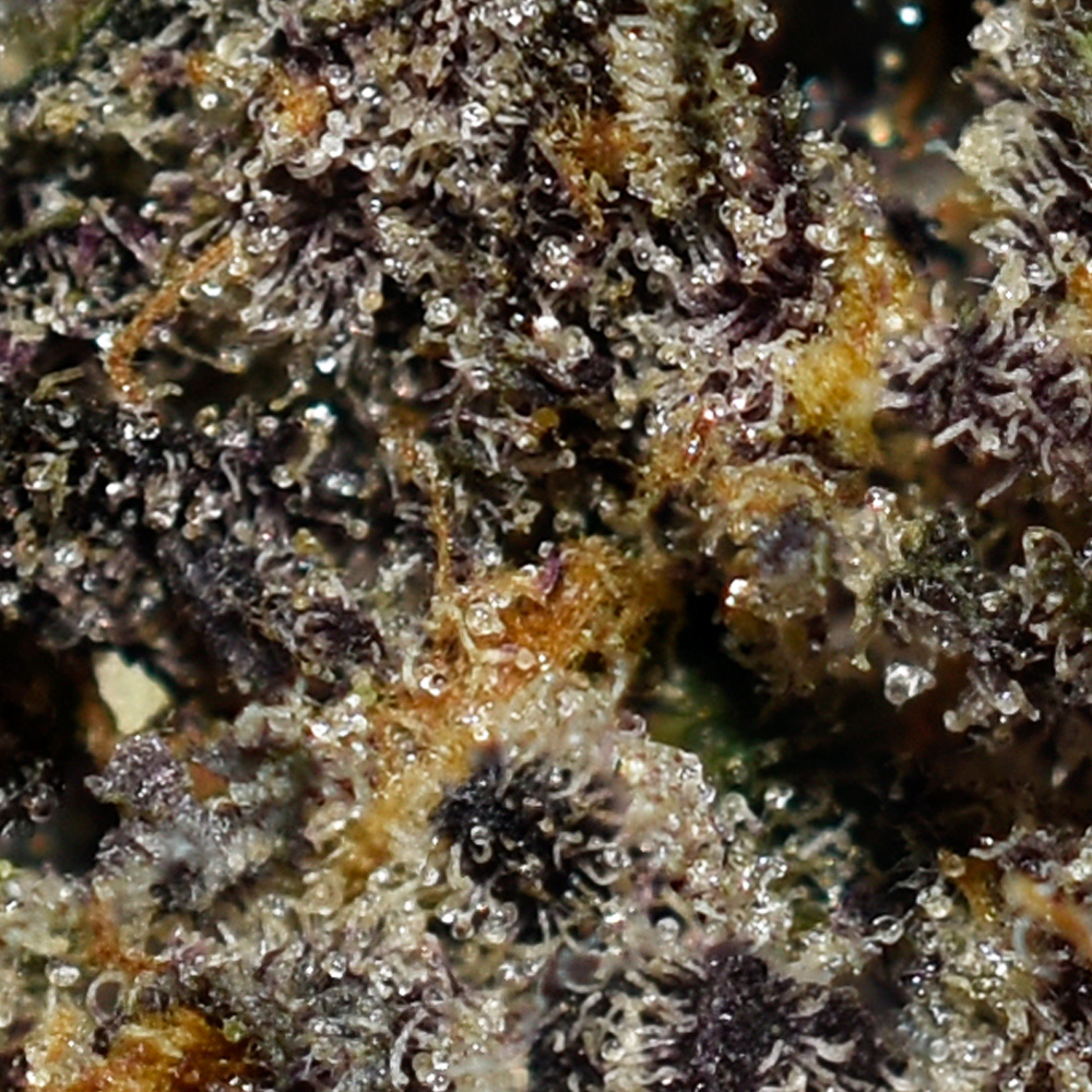 The smell is just as sweet and chocolately, although it has a fragrant floral aroma that accents it beautifully. Ice Bomb buds are insanely frosty and sticky, completely coated with light lavender colored crystal trichomes coating the entirety of each spade-shaped dark purple nug.