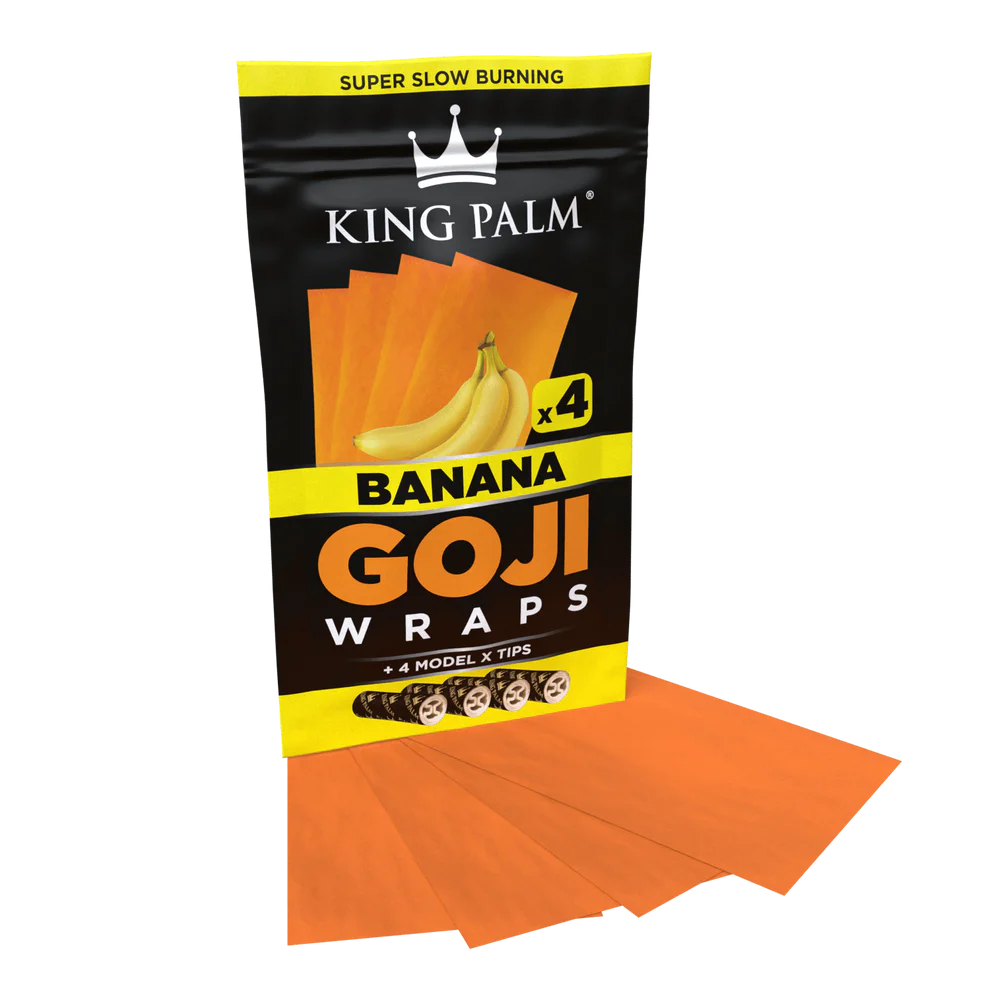King Palm Goji Wraps – Banana goji smoking wraps are the first flavored blunt wraps in the world made from the superfruit goji berries. The organic berries are harvested sustainably and the pulp and fiber are processed with renewable power into the most velvety smooth, slow-burning natural wraps available. Then we package them at peak freshness, so every time you open a 4-pack you get moist, flexible goji blunt wraps and 4 Model X filter tips that are ready to roll.