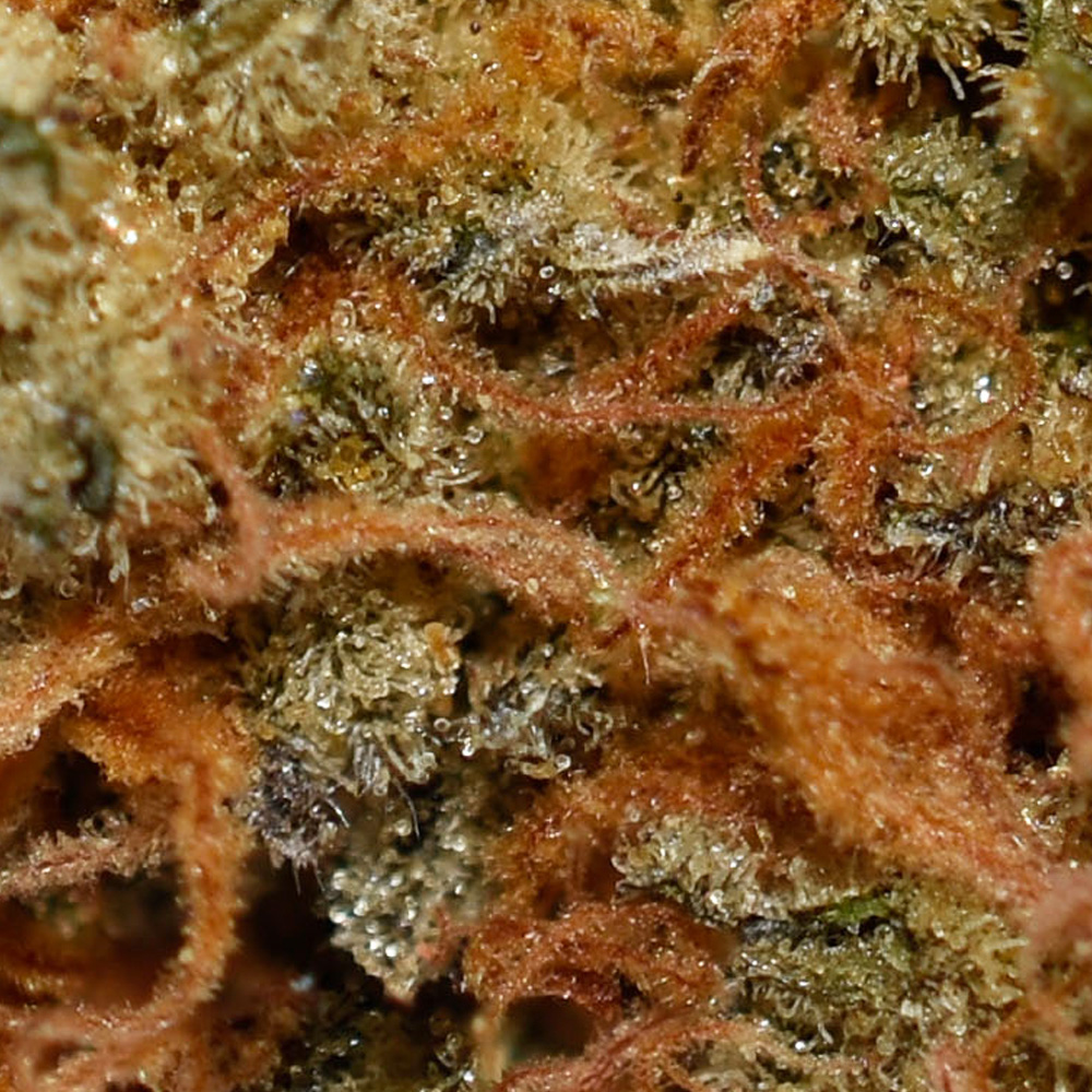 A sense of calm comes next, seeping its way into both mind and body, leaving you feeling relaxed without too much sedation. Thanks to these effects and its moderate 12-20% average THC level, Orangeade is often chosen to treat chronic stress, depression, chronic fatigue, nausea or appetite loss or chronic pain. This bud has fat grape-shaped dark olive green nugs with thin orange hairs and a frosty thick coating of tiny amber-white tinted crystal trichomes.