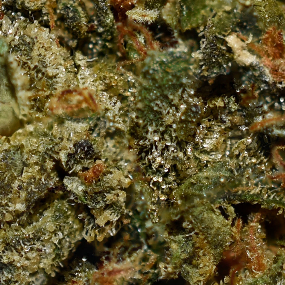Thanks to these effects and its super high 19-29% average THC level, Runtz is often said to be perfect for treating conditions such as insomnia, chronic pain, appetite loss or nausea and chronic stress or anxiety. This bud has dense grape-shaped olive green nugs with thin orange hairs, dark purple undertones and a coating of frosty tiny white purple-tinted crystal trichomes.