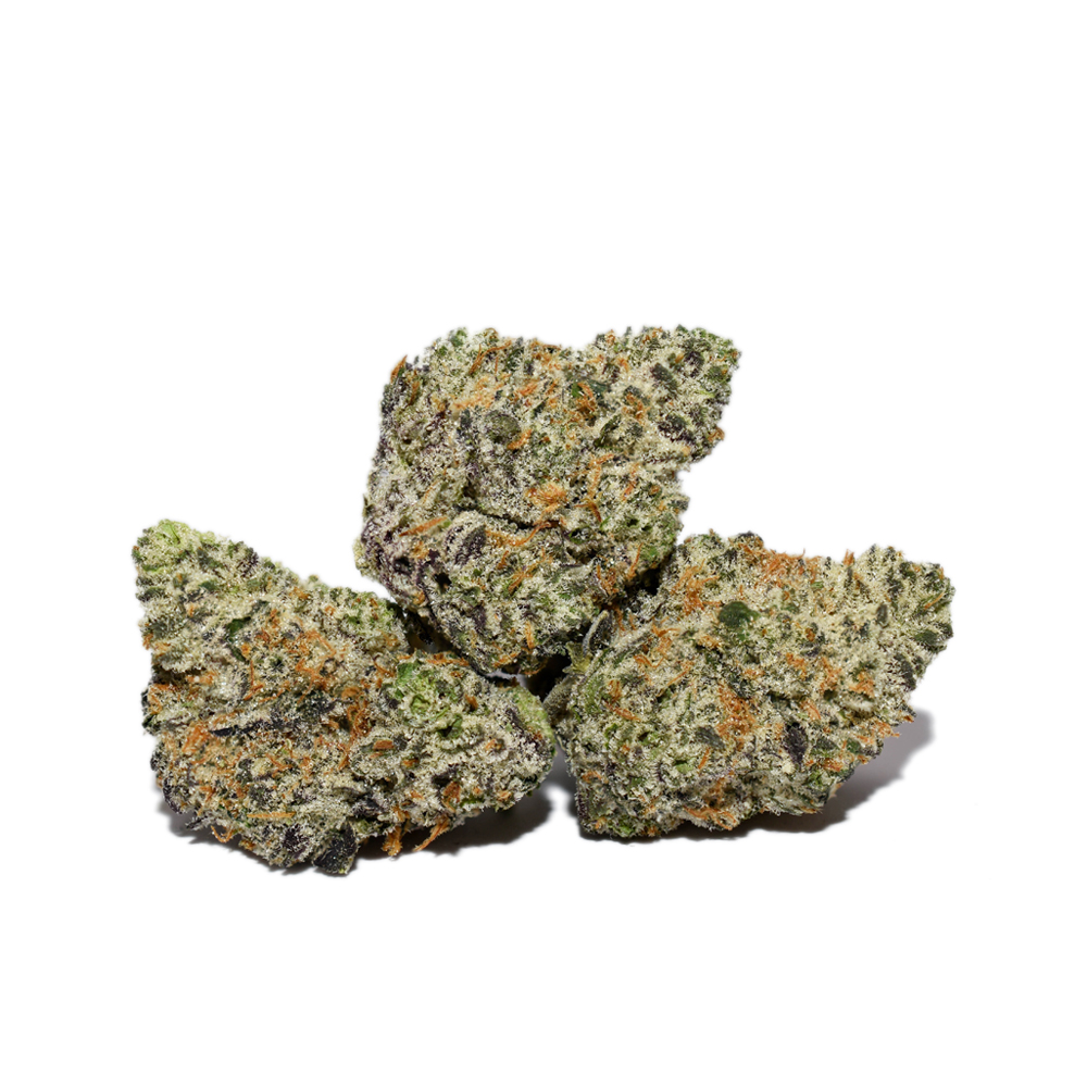 Thanks to these effects and its super potent 20-28% average THC level, Slurricane is the perfect choice for treating patients suffering from migraines or headaches chronic pain, cramps or muscle spasms and chronic fatigue. This bud has fluffy grape-shaped oversized dark olive green nugs with rich purple undertones, thin amber hairs and a coating of purple-tinted tiny white crystal trichomes.